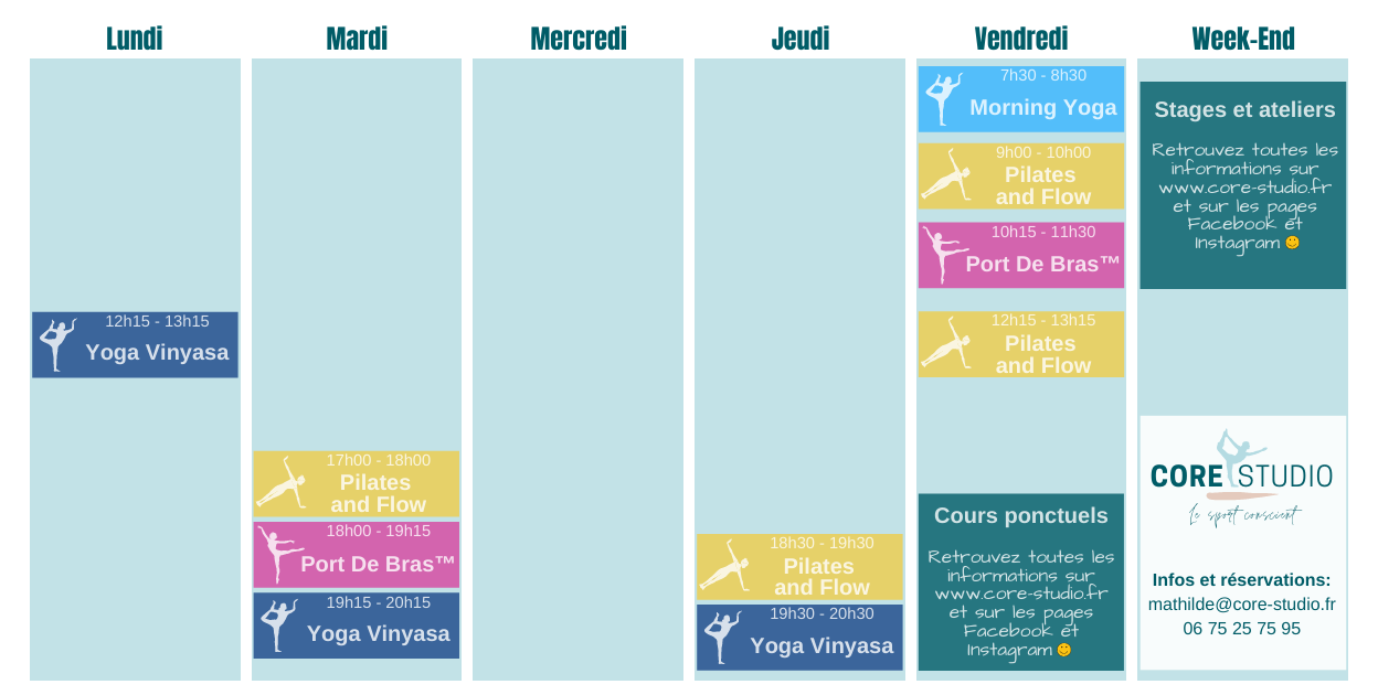 Les inscriptions et réservations se font toujours en me contactant, si vous êtes nouveau chez Core Studio 😉.